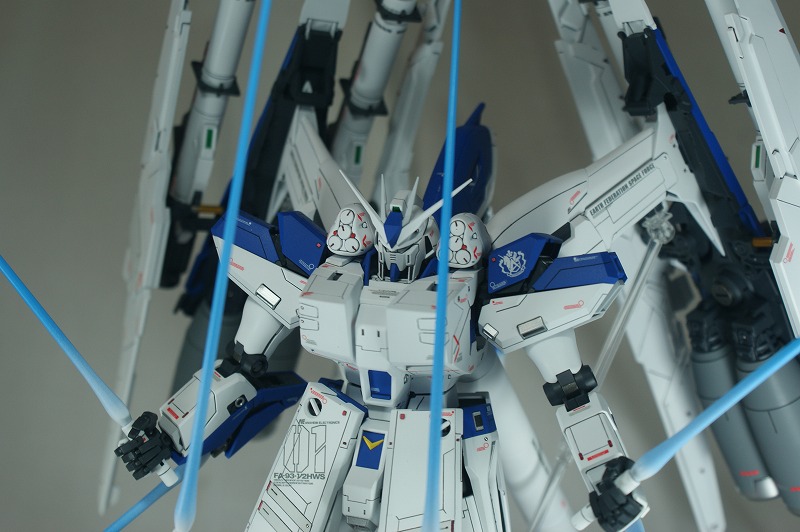 製作には、MGHi-νガンダム、H.W.S拡張キット×2、Wファンネル拡張キットを使用しています。