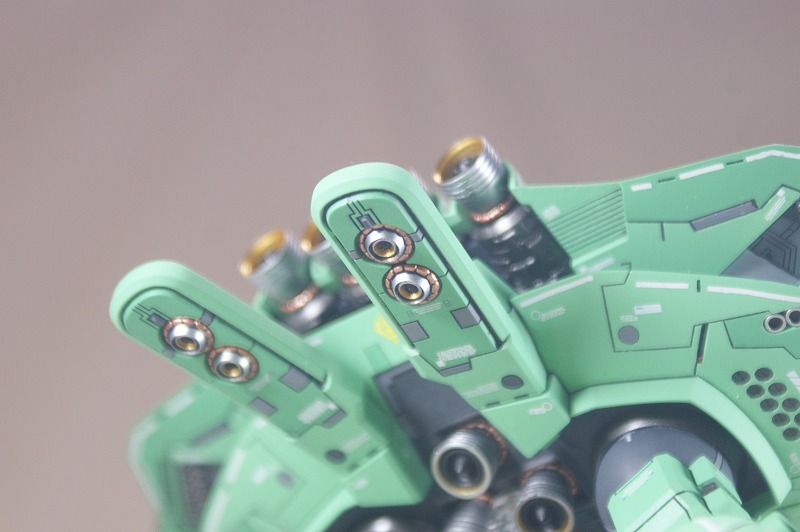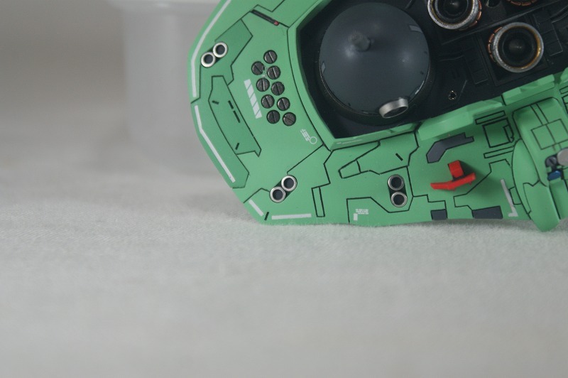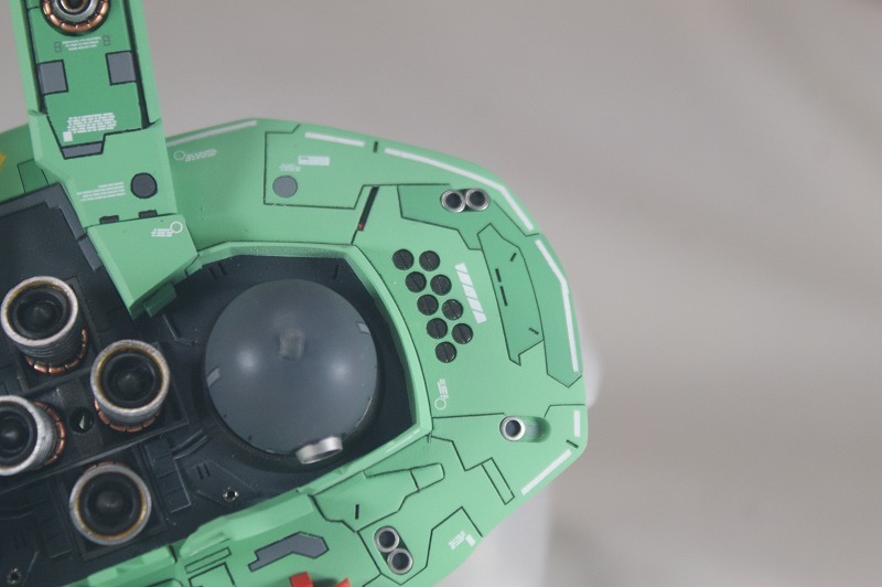 ◎下側の面のスラスターは表面処理がめんどくさいので、市販パーツでディテールアップ。