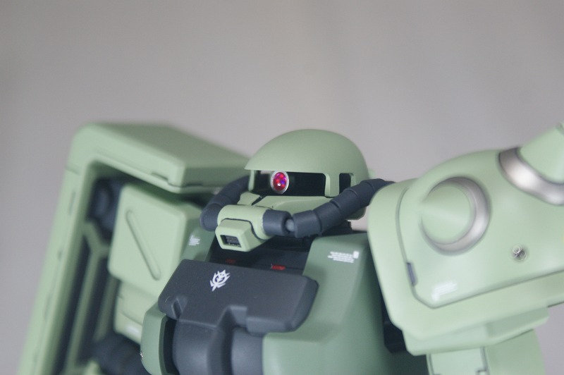モノアイは市販パーツでディテールアップ。