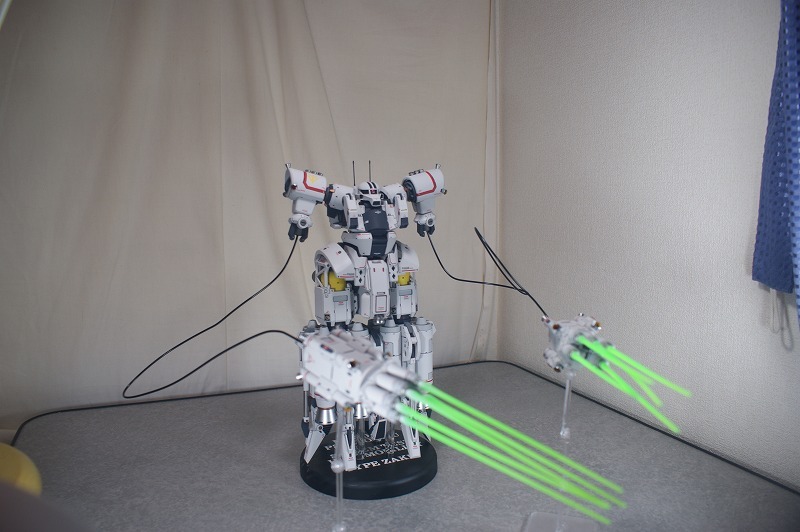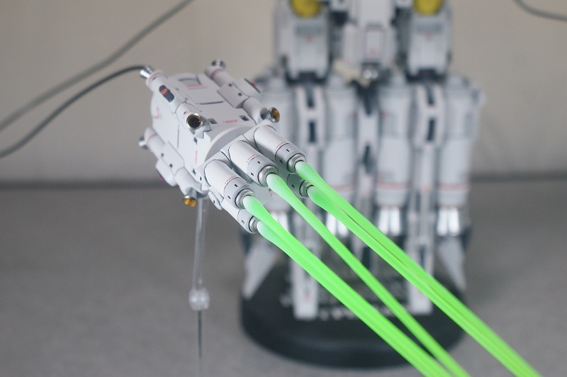 ビームエフェクトは、そのままだとおもっちゃぽいので、根元にホワイトを入れて、発光をイメージ。