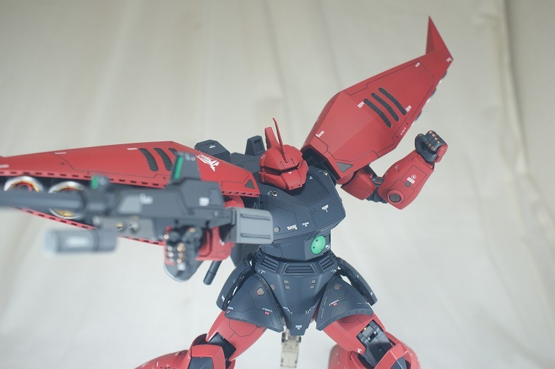 ベースであるMGゲルググVer2.0は全体的に、「線」が多いほうなのですが、