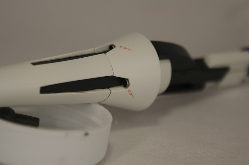 ディフェンスロッドは白い部分が別パーツだったのですが、強度的に不安があるので、 最初に接着してからマスキングをして塗装いたしました。