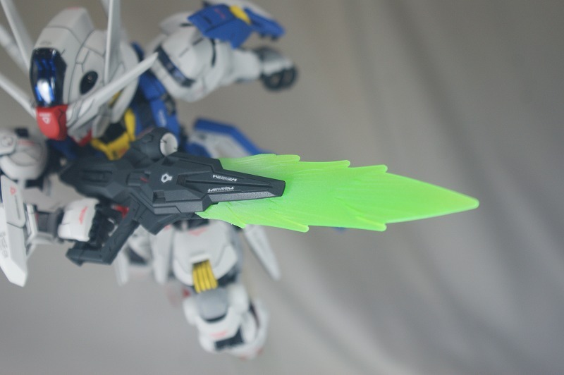 ◎ビームライフルに装着できるビーム刃もホワイトでグラデーション塗装。